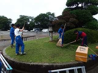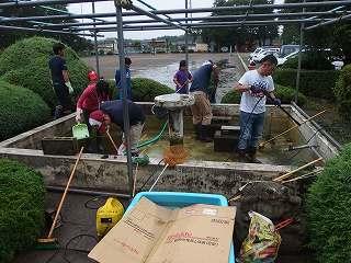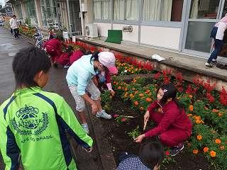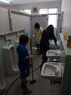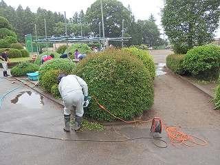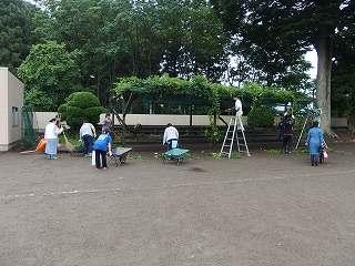 本日午前6時よりPTA奉仕作業が予定どおり行われました。129名の保護者と51名の5年生が参加しました。植木の剪定(せんてい)、草刈り、藤棚のつる切り、教室の窓ふき、トイレ掃除、除草、池掃除を行いました。おかげで学校が校舎内外とも、たいへんきれいになりました。参加された保護者、5年生児童の皆さんにはたいへんありがとうございました。また、中心になって運営していただいた厚生部員の皆様にもたいへんお世話になりました。