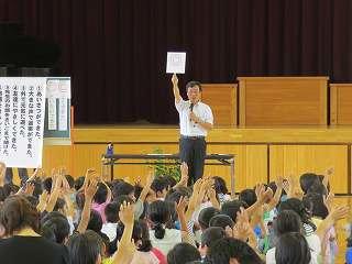 終業式では、校長先生から全校生に1学期頑張ったことを手を挙げて確認しました。