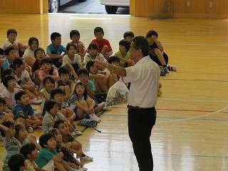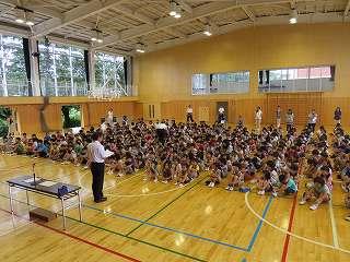 児童指導主任の先生から夏休みの過ごし方についての話がありました。けがや事故に気を付けて、楽しい夏休みを過ごしてください。