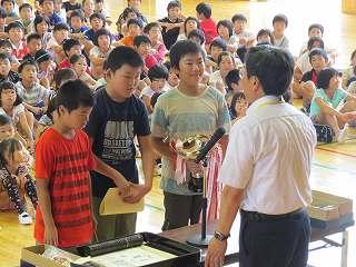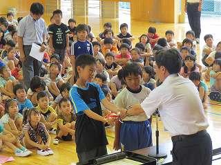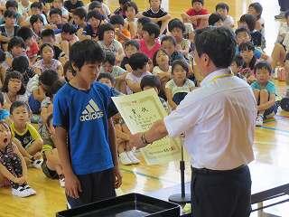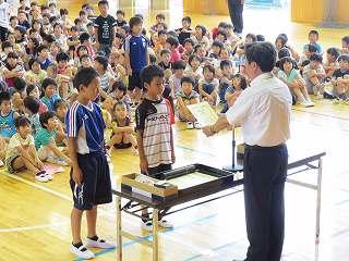 賞状伝達も行いました。1学期、学習、運動と頑張りました。