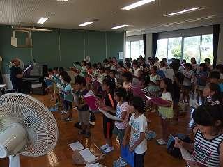 夏休み初めての合唱部と水泳の練習が行われました。暑い中でも頑張る七井っ子です。