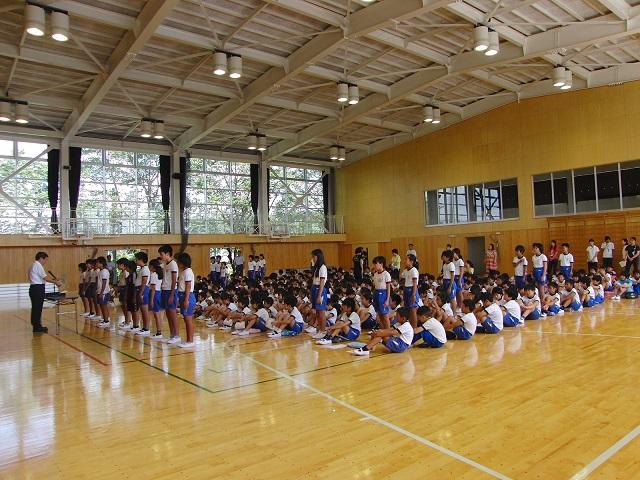 今日は朝から雨が降っていたので、体育館で開閉会式の練習をしました。