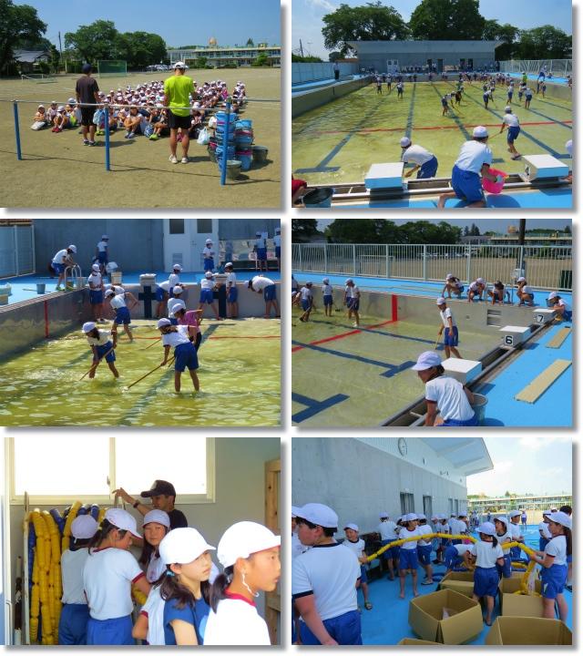 清掃の時間から5,6時間目にかけて、プール清掃がありました。