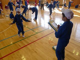 寒さに負けず、子供たちは熱心になわとびを頑張っています。