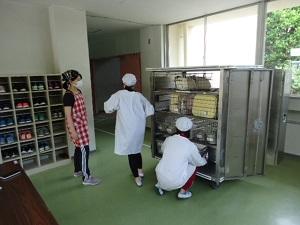 少しでも接触を避けるため、給食当番の集まる場所は、できるだけ分散させました。
