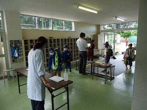 また児童の下校後に教室をはじめ、水道やトイレの消毒に、全職員で取り組んでいます。登校してきた子供たち一人一人の笑顔がまぶしく感じ、大変印象的でした。