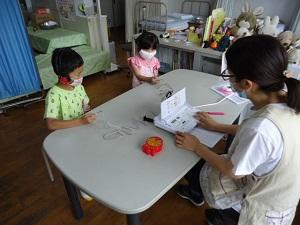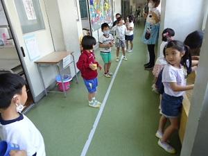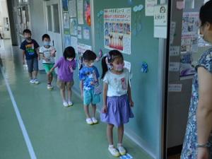 どちらも、自分の順番になるまでは、友達との間隔をしっかりとあけ、密になることを避けています。