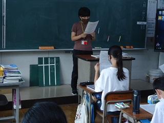校長先生の話から始まり、2・4・6年生の代表児童が、2学期に向けての作文発表をしました。