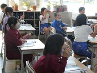 午前中の授業の様子です。1年生は国語と道徳、2年生は算数、3年生は道徳と社会、4年生は社会と理科、5年生は算数と外国語、6年生は算数と国語?の授業スナップです。