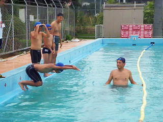来週金曜日7月26日の益子町水泳記録会に向けて練習が始まりました。今日は飛び込みの練習を行いました。