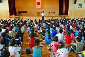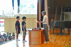 1学期の終業式が行われました。校長先生のお話を聞いた後、1・3・5年生の代表児童の作文発表がありました。体育館に集まった全校児童はみんな姿勢がよく、最後まできちんとした態度で話を聞くことができました。