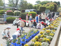 A先生の指示で歌を歌ったり「Good morning」「Hello」「Thank you」などのあいさつを交わしたりしました。
