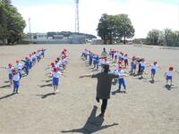 午後は学年での合同体育です。気温が上がってきましたね。脱いだ洋服をきちんとたたんでから広い校庭でのびのびと運動していました。