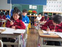 3年生以上が学力テストにチャレンジしている時、1年生もお勉強を頑張っていました