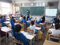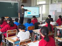 2-1道徳&給食の様子、3-1国語、3-2理科、4-1社会、4-2書写、5-1算数、5-2社会、6-1・6-2体育の様子です。子供たちは担任の先生以外にも出授業や補教などでいろいろな先生と関わっています。