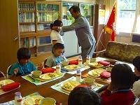 あいさつチャンピオン(4~6年生)の会食がありました。校長先生と、楽しそうに会食していました。