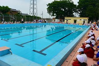 今日、プール開きを行いました。きれいになったプールを囲んで、これから始まる水泳の授業の約束を確認しました。福祉運動委員長の6年生が児童を代表して作文を発表しました。自分のめあてをしっかりもって、真剣に練習しようとする内容の作文でした。体調を整えて、しっかり水泳の練習に臨みたいと思います。これから始まる水泳の授業が楽しみです。