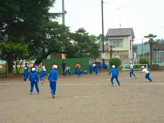 1~3年生はクラスごとにドッジボール、6年生は男女別にキックベースをやりました。