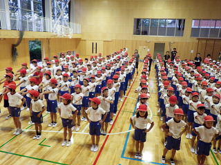 今日から運動会の全体練習が始まりました。天気が悪かったため、体育館で練習を行いました。昨年度までの2年間、地震による被災で体育館が使用できず、全校生そろっての屋内での練習ができませんでしたが、今年度からは体育館での練習ができるようになりました。今日は、入場の並び方と行進を練習しました。整列もきれいにできました。明日の練習もがんばりたいと思います。まだ、厳しい暑さが続いています。ハンカチや汗ふきタオル等の準備もお願いします。