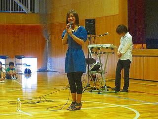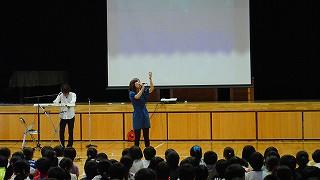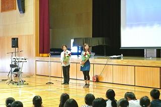 今日、七井小学校創立記念コンサートが行われました。七井小は今年創立140周年を迎えました。140周年を記念して本校の卒業生である藤原稜子さんが記念コンサートを開いてくれました。藤原さんはアメリカでも活躍しているアーティストで昨日ニューヨークから帰ってきたばかりだそうです。今日はオリジナルの曲を中心にたくさんの曲を全校生に聴かせてくれました。特に校歌やパワーフォアーライフで盛り上がり、演奏会場が一体となりました。演奏が終わった後も4校時の授業を参観し給食を一緒に食べるなど、楽しい時間を一緒に過ごすことができました。お忙しい中、お越しいただいた「I-nos」の綾さん、堀田さんにはたいへんお世話になりました。i-nosの活躍を七井小のみんなが楽しみにしています。ありがとうございました。