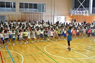 児童指導の先生から夏休みの生活についてお話がありました。交通ルールを守ること、特に「止まれ」をいつも意識して通行すること、また、ヘルメットをしっかりかぶることを約束しました。