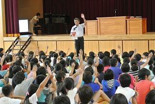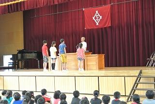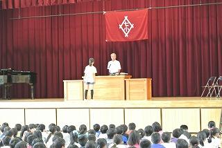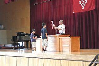 2校時に終業式がありました。校長先生のお話(詳しくは学校長の部屋をご覧ください)の後に代表児童1・3・5年生の作文発表がありました。3人とも1学期がんばったことと夏休みのめあてをしっかり発表することができました。