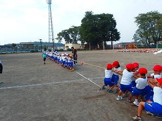全体への説明 1・2・3年生の綱引き
