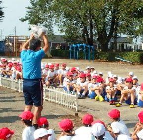 連休中、校庭にお菓子の袋やジュースの空き缶などのごみがたくさん落ちていました。児童指導の先生からごみは持ち帰るという基本的なことしっかり守ることを約束しました。