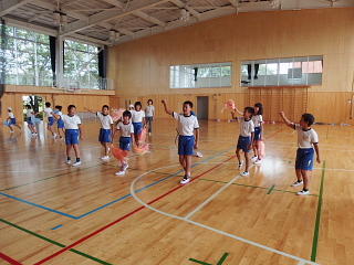 今日の運動会の練習は、全校ダンス「日光和楽踊り」をやりました。初めての練習でしたが、入場から退場まで練習することができました。1年生も頑張って踊っていました。