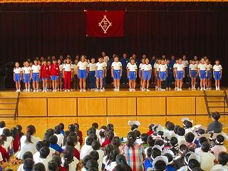 4年生 ステージの上から迫力いっぱいの発表ができました。