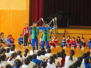 6年生 柿山伏 柿主と山伏のかけ合いを演技を入れて発表しました。「おおとり」にふさわしい発表でした。