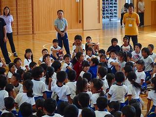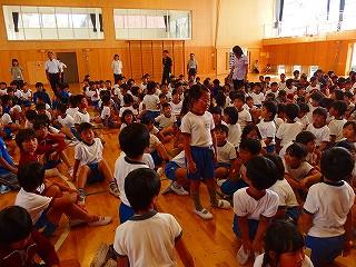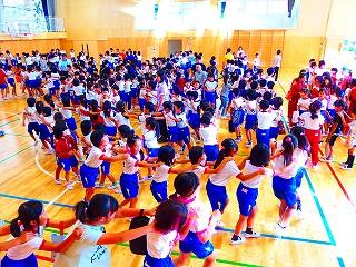 児童集会がありました。じゃんけん列車ゲームをやりました。じゃんけんで勝った子の後ろに負けた子がついていき、長い列になりました。時間があったので2回戦を行いました。楽しい時間を過ごすことができました。