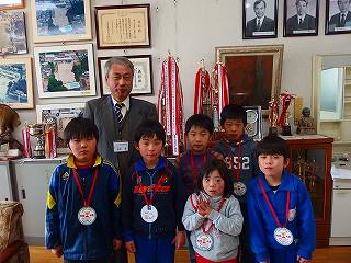 あいさつグランドチャンピオンが校長先生と会食をしました。グランドチャンピオンとは、今年1年間のあいさつチャンピオンの中のチャンピオンです。これからも七井小のあいさつリーダーとして活躍してください。