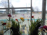 5-1のフリージアも教室中に春の香りを漂わせ、プランターで育てたパンジーも満開で卒業式場を彩ります。