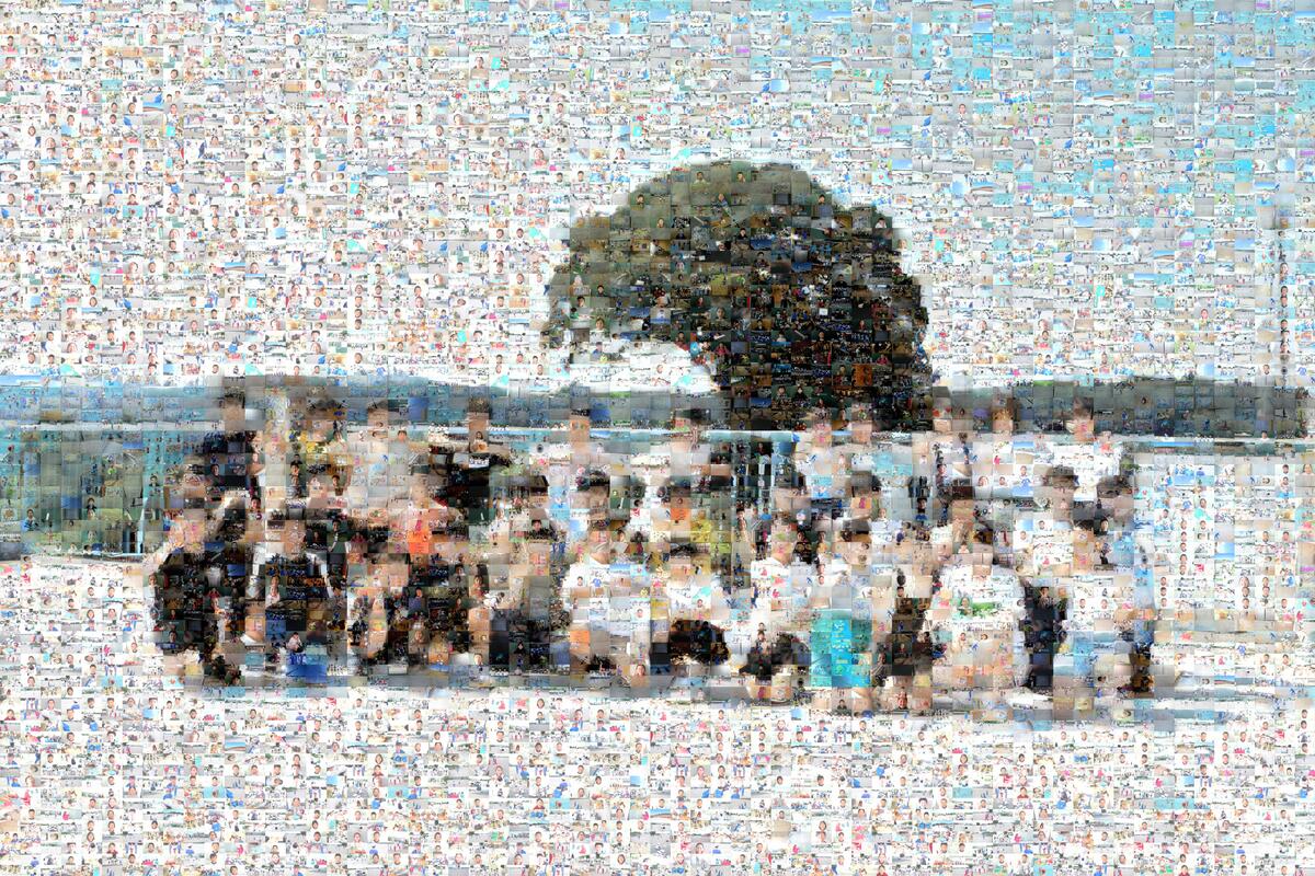 によるモザイクアートで、担任の先生が思いを込めて作成したものです。今日まで先生たちも本当によく頑張っていましたね。職員のチームワークにも天晴れ!です。