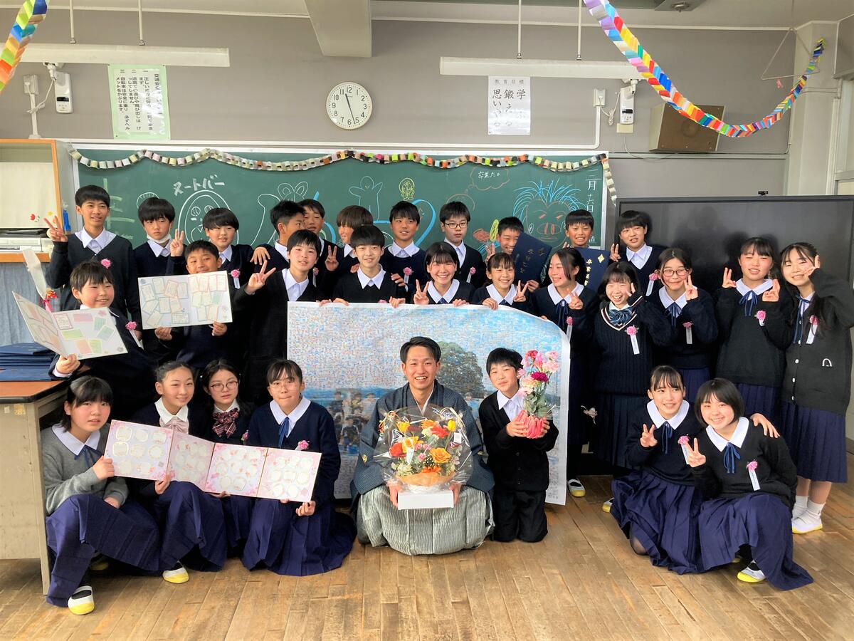 卒業のお祝いに「道の駅ましこ」樣より卒業生に「とろたまプリン」の贈呈があり6年生はとろける笑顔でいただいたようです。(*^▽^*)