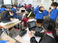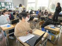 5-1の授業は “学力向上推進リーダー提案授業”として、他市町のリーダーの先生たちも参観し、研修していました。