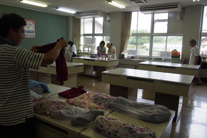 7月15日に行われた着衣泳体験。PTAでは、参観したり、終了後、濡れた衣服の脱水を行うボランティアに協力したりしました。