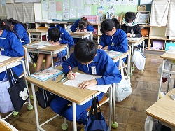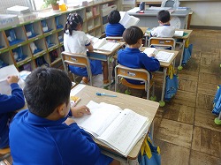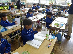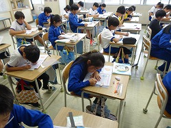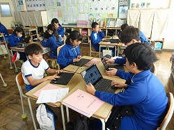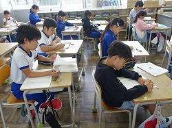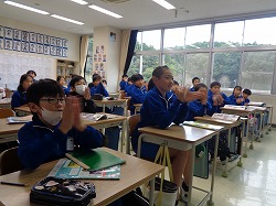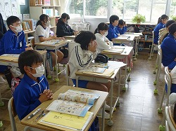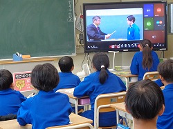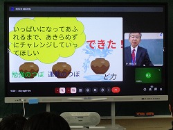 オンラインで、賞状伝達と朝会を行いました。校長先生から、努力することの意味について、お話がありました。児童は、真剣に話を聞いていました。