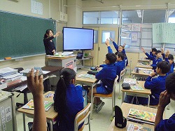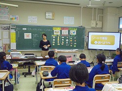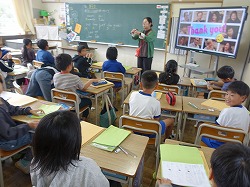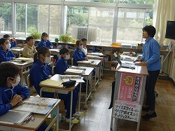 給食センターの栄養教諭を講師に迎え、食事の役割と栄養のバランスについて、食育の授業を行いました。