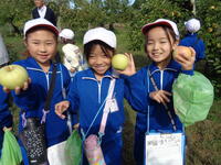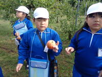広田りんご園を見学させていただきました。りんごや農作物に関する子供たちのたくさんの疑問を解決できた様子で、目を輝かせて帰校しました。りんごのお土産もいただき、皆とても嬉しそうでした。ありがとうございました。