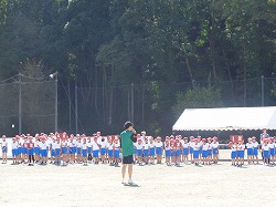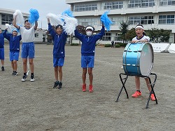 開閉会式の入場と応援の練習を行いました。応援の練習では、赤組、白組それぞれ、応援の係が中心となり、力を合わせて力一杯取り組んでいました。