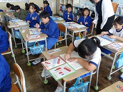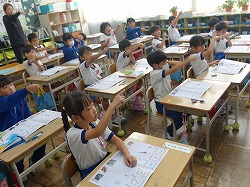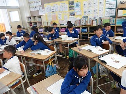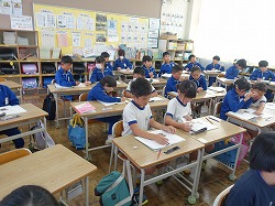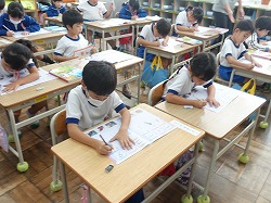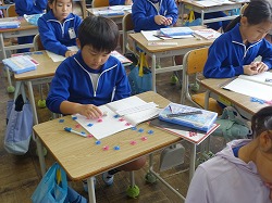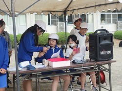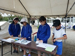 明日の運動会予行練習に向けて、5、6年生の児童が、係の活動を行いました。