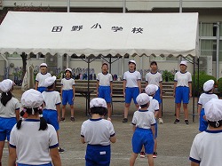 本日は、ラジオ体操と校歌の練習を中心に行いました。