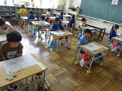 本日より、運動会全体練習が始まりました。どのような運動会にしていけばよいか確認した後、開閉会式を中心に練習を行いました。児童は、きびきびと行動するなど、一生懸命に取り組んでいました。
