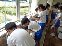 保護者や地域の方にご協力いただき、第1回奉仕作業を実施しました。草刈り、除草、剪定、側溝掃除などをしていただき、とてもきれいな環境になりました。大変ありがとうございました。