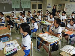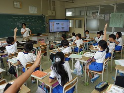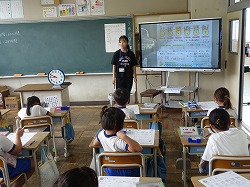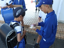 今週はあいさつ運動週間となっています。企画集会委員の児童が、昇降口で登校する児童に元気なあいさつを呼びかけていました。