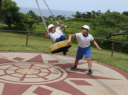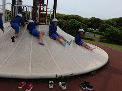 野外調理の後、アスレチック広場でフリータイムを過ごしました。楽しそうに遊んでいました。
