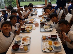 砂浜活動でお腹がすいたという声も聞こえ、おかわりをしていた児童も多かったです。