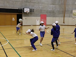 スポーツ館で、リレーやドッチボールを行いました。元気いっぱいに活動を楽しんでいました。